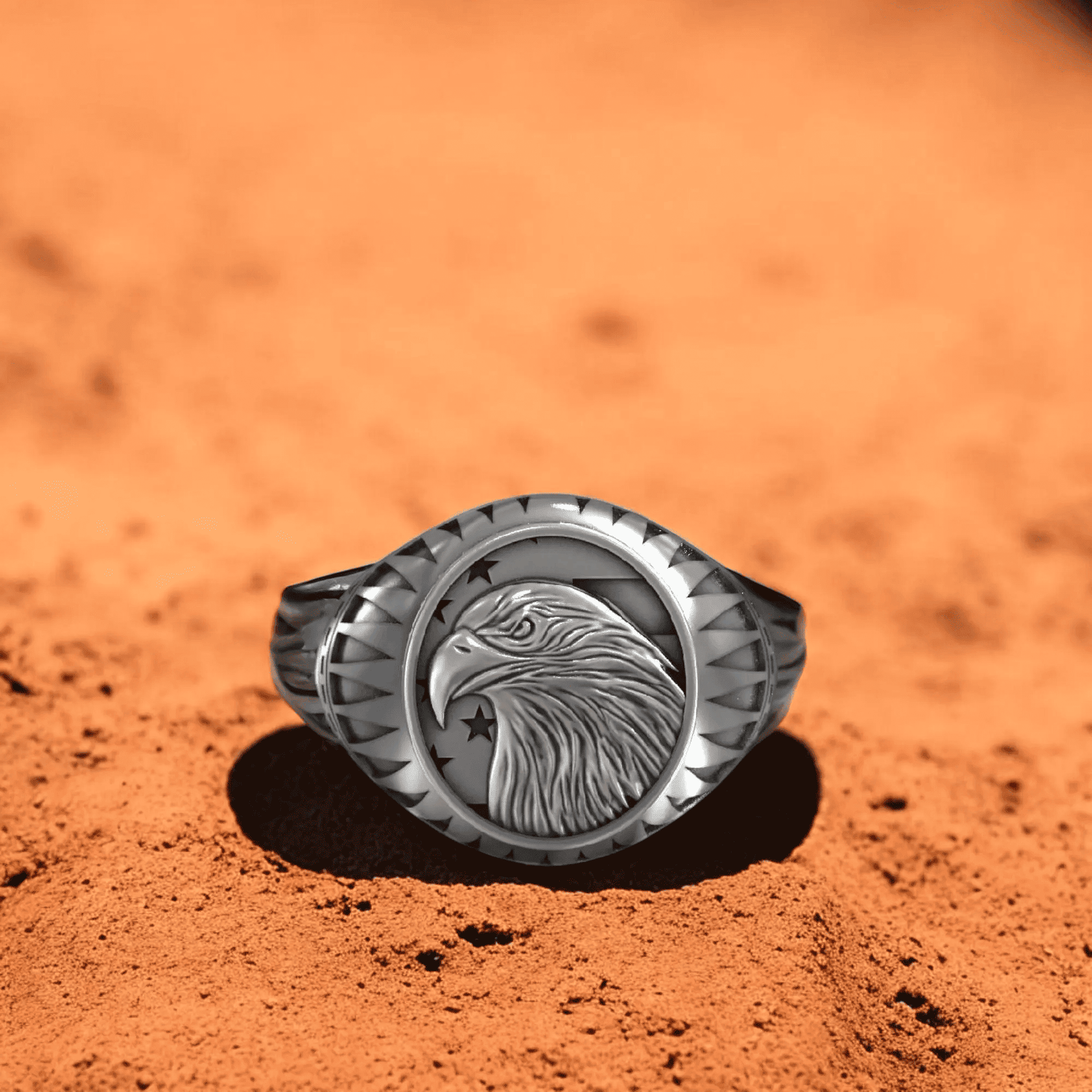 Adjustable Eagle Signet Ring for Men – Silver-Tone Copper Statement Ring