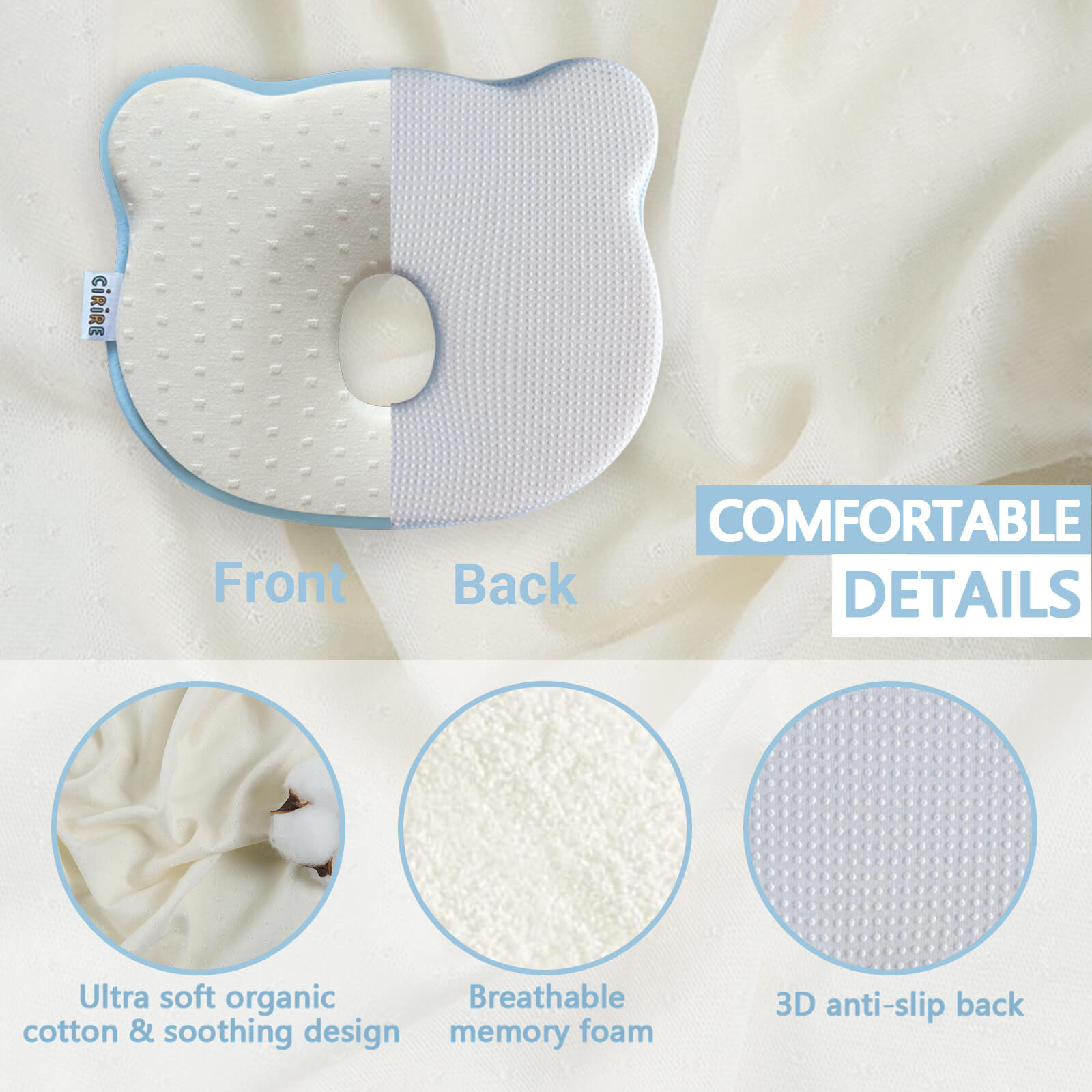 With its gently curved design, this pillow provides soft, balanced comfort for your baby’s head during awake time. The rounded shape helps your little one rest comfortably while being supported in a natural position.