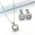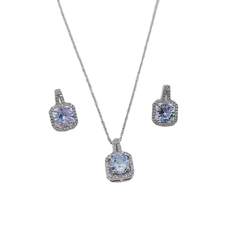 Silver-Tone Square Zircon Jewelry Set – Necklace & Earrings for Women
