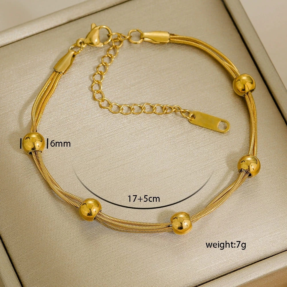 Elevate your style with this multi-layer bracelet for women, a chic and elegant accessory suitable for everyday wear or special occasions. Made with high-quality gold plating, this delicate stackable bangle adds a touch of sophistication to any outfit.
